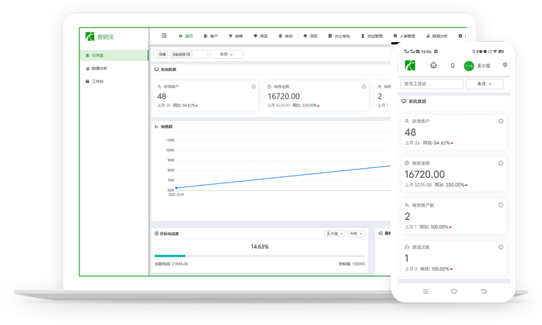 客销宝CRM系统融合新型互联网技术,从营销、销售到服务管理一体化的企业级CRM平台,助您成为以客户为中心的数字化运营组织!